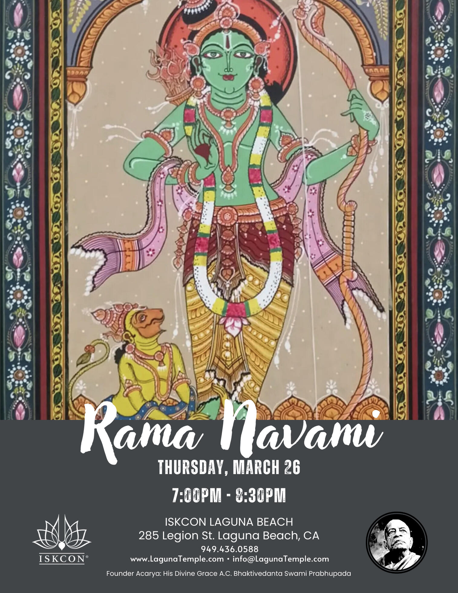 - Appearance of Lord Ramacandra - Friday March 26, 7p-8:30p